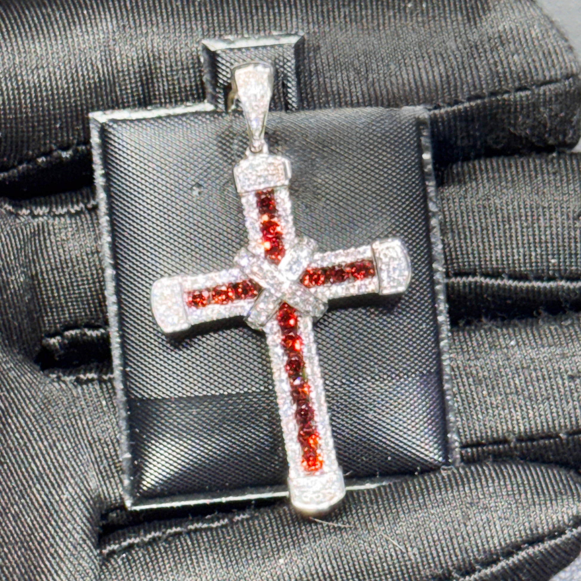 14K White Gold Diamond & Ruby Cross Pendant – 2.10 CT