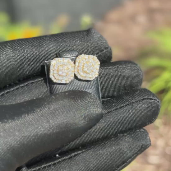 10K Gold Baguette & Round Diamond Octagon Earrings 1.04 Carats – Iced Out Hip Hop Studs