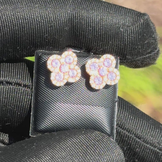 Yellow Gold Diamond & Pink Gemstone Flower Earrings 1.20ct – Luxury Hip Hop Cluster Studs